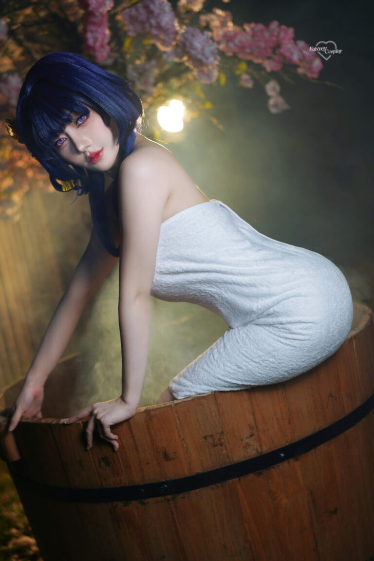 Tags: genshin impact, raiden shogun, makeup, painted nails, ponytail, very long hair, bathing room, non-nude, faixvey