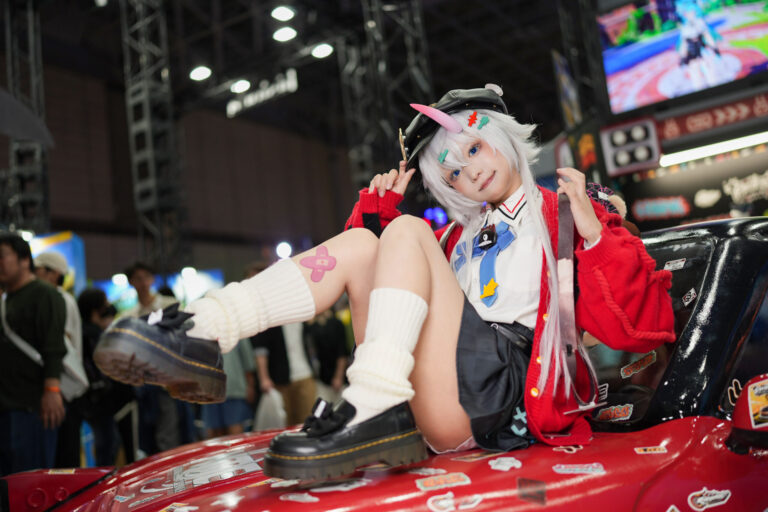 Tags: neverness to everness, sakiri, kurumi purarine, females only, glasses, gloves, horns, kemonomimi, kimono, makeup, painted nails, ponytail, schoolgirl uniform, stockings, very long hair, non-nude