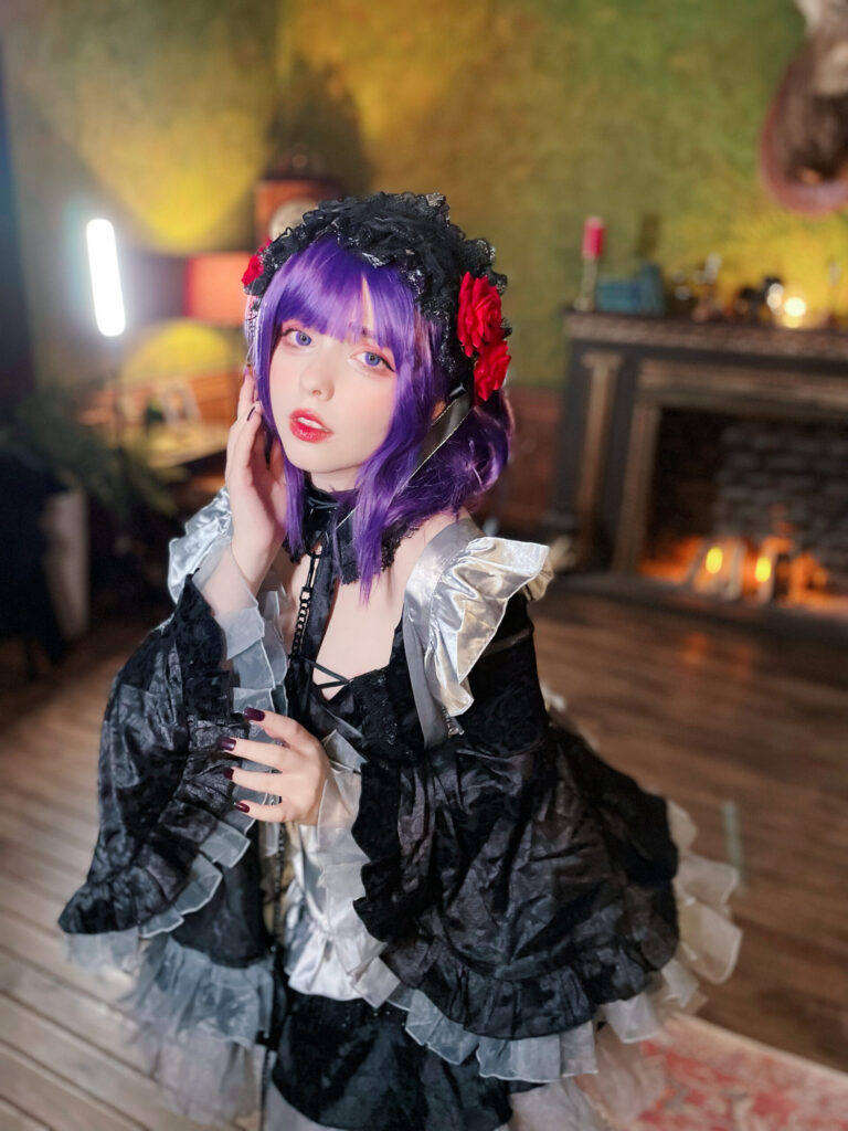 Tags: sono bisque doll wa koi o suru | my dress-up darling, shizuku kuroe, saya scarlet, collar, gothic lolita, leash, makeup, painted nails, sole female, stockings, non-nude