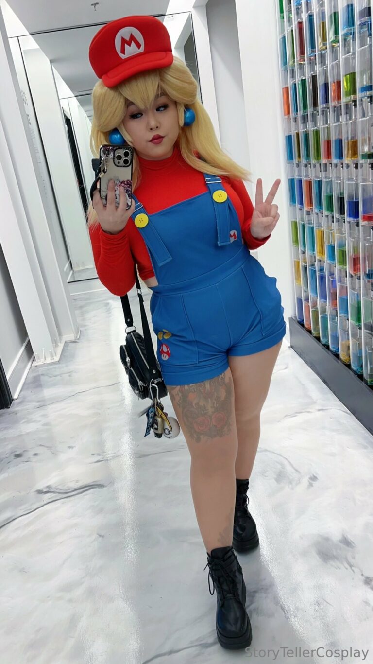 Tags: super mario brothers | super mario bros., mario, princess peach, bbw, big breasts, gloves, large tattoo, painted nails, piercing, non-nude