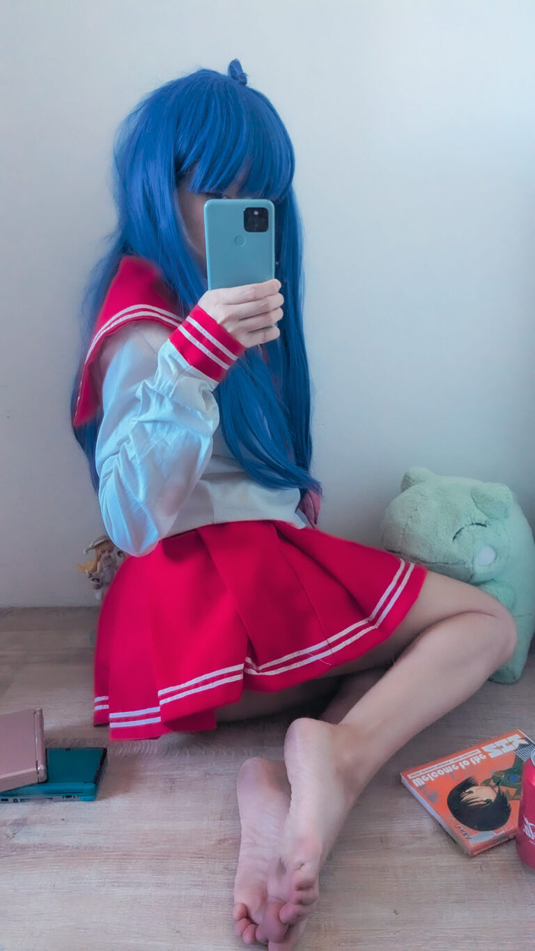 Tags: lucky star, konata izumi, filming, makeup, schoolgirl uniform, stockings, very long hair, non-nude